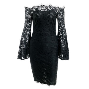 Off Shoulder Flare Sleeve Lace Bodycon Dress