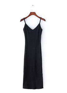 Sexy Spaghetti Strap Slash Neck Midi Dress