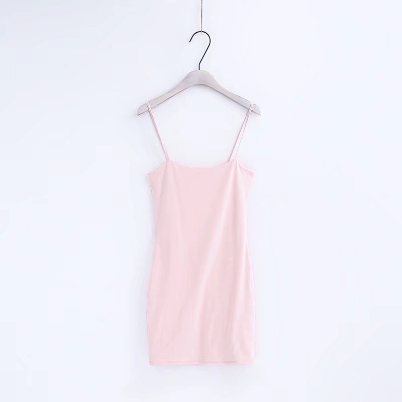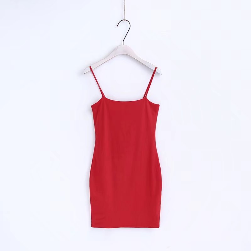 Women Basic Slip On Bodycon Dress Sexy Slash Neck Skinny Cami Dresses