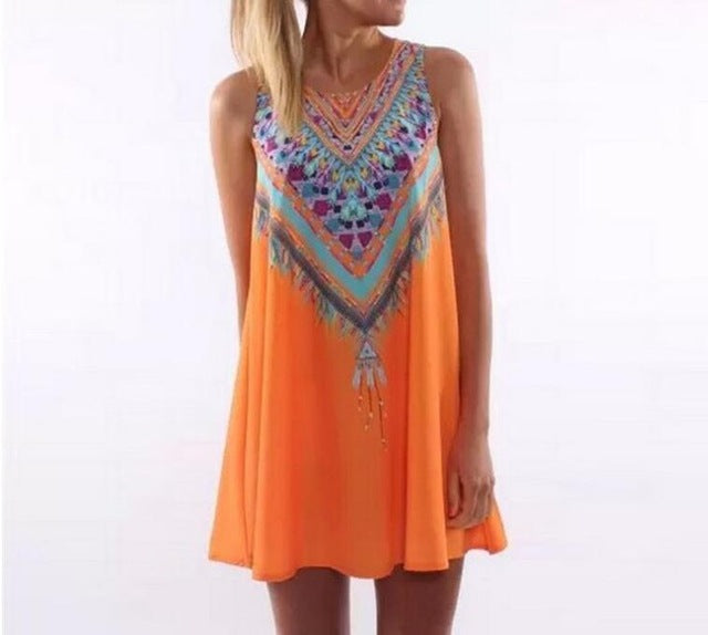 Women Dress 2018 New Style Summer Dress Casual Beach Dress Floral Print Tunic Sleeveless Short Chiffon Dress Vestido QQ20180219164606