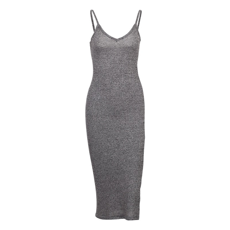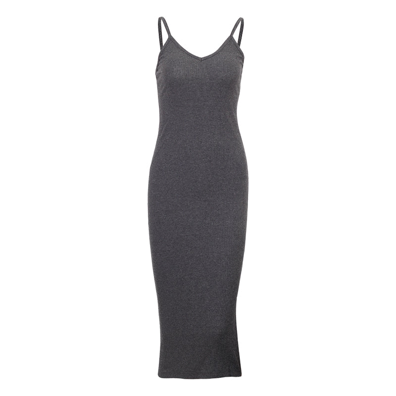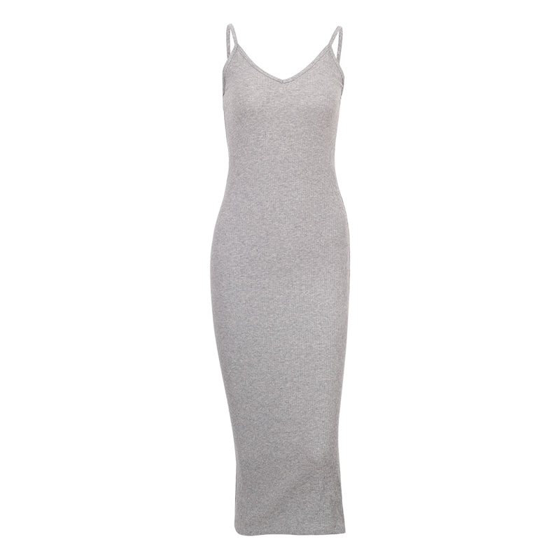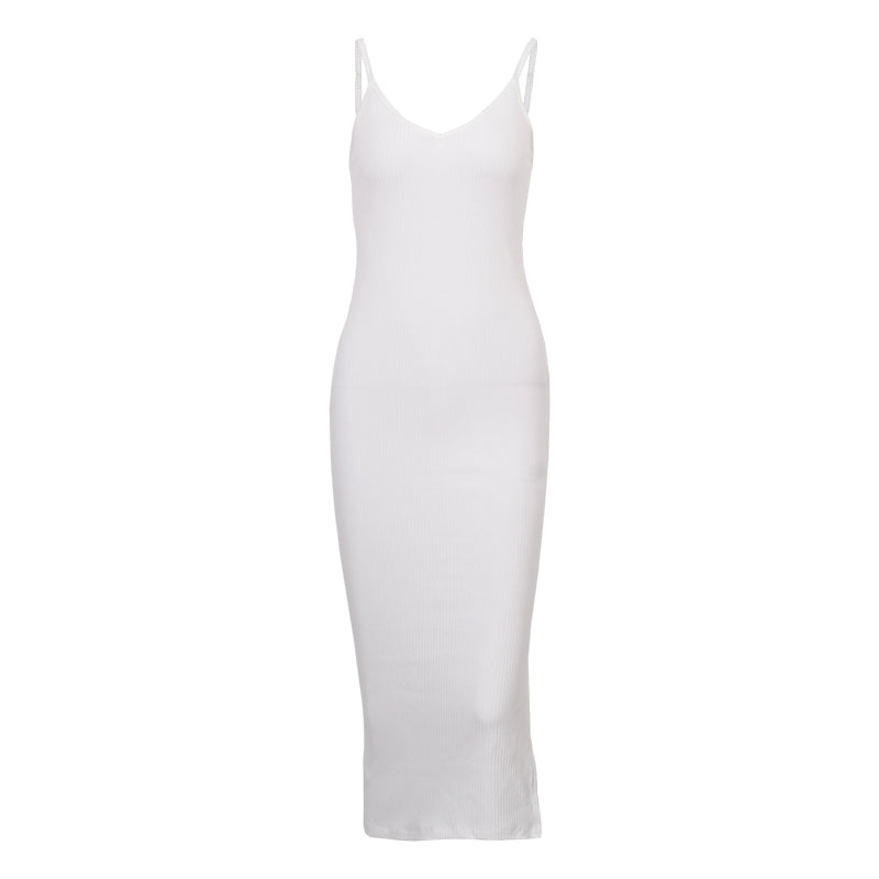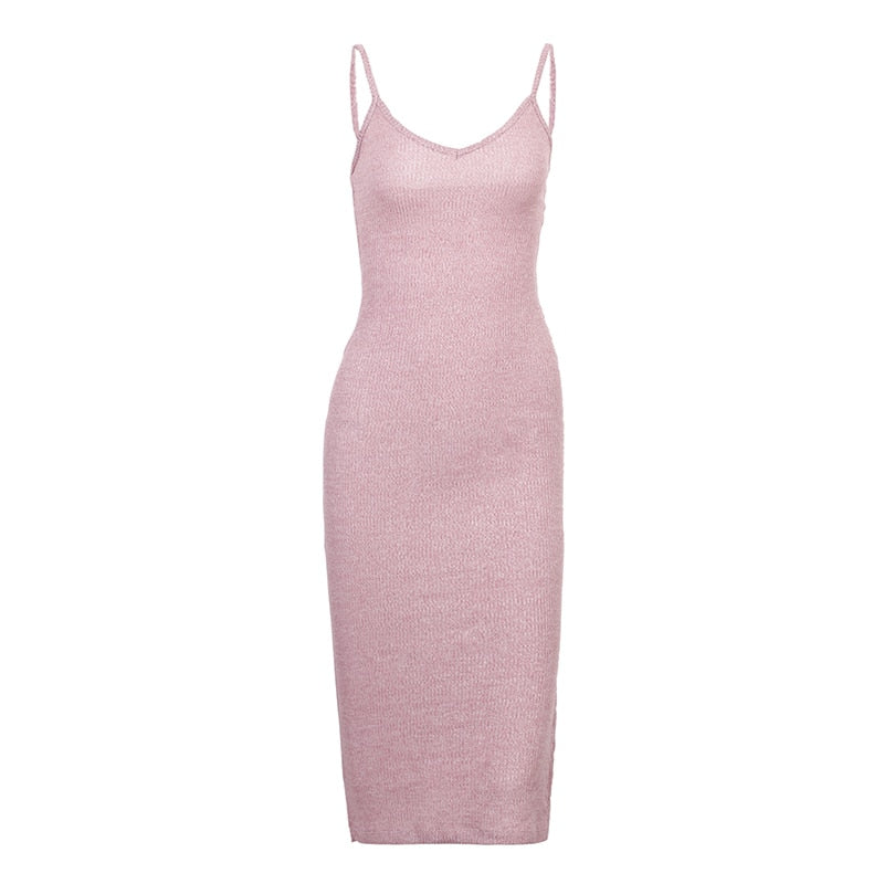 Basic Dress Sexy Bodycon Party Dress Women V Neck Side Split Rib Knit Summer Cami Dresses Fashion Elegant Midi Dress