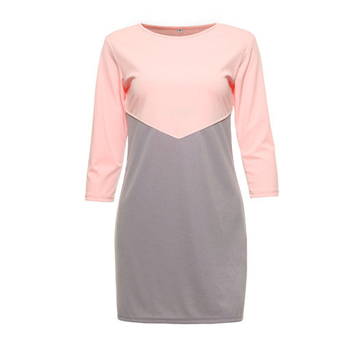 Women O-Neck Dress Sexy Casual Patchwork Mini Dress Spring Autumn Three Quarter Sleeve Bodycon Dresses Vestidos Plus Size