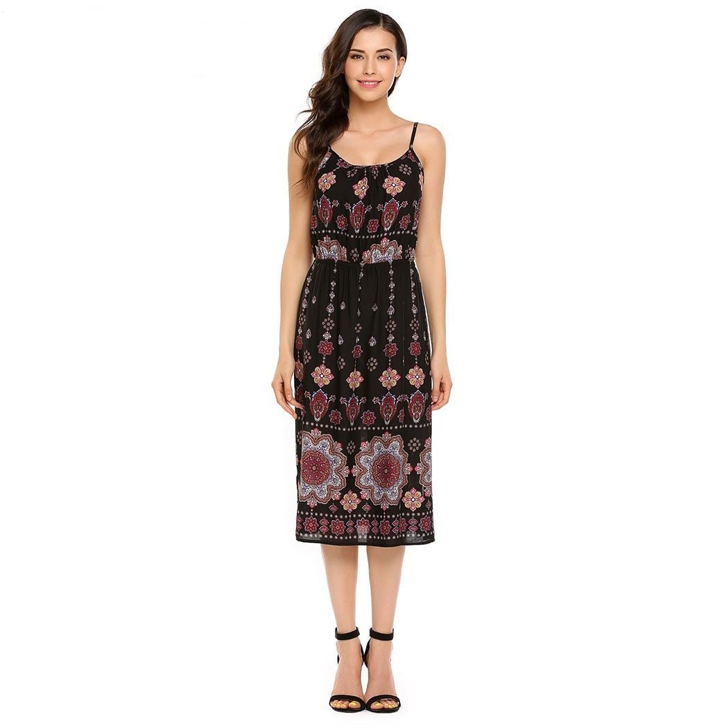 Floral Print Spaghetti Straps Sundress Women Sleeveless Calf Length Sheath Dresses Empire Casual Summer Dress Vestidos