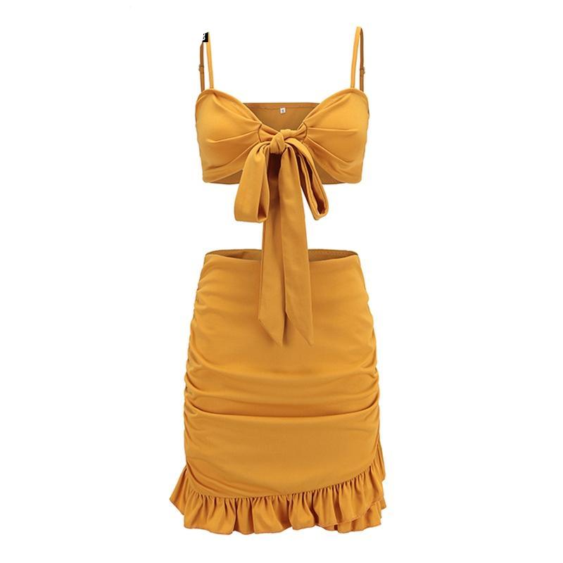 Two piece dress/Ruffle/Bow tie/Halter/Short tank top/Zipper