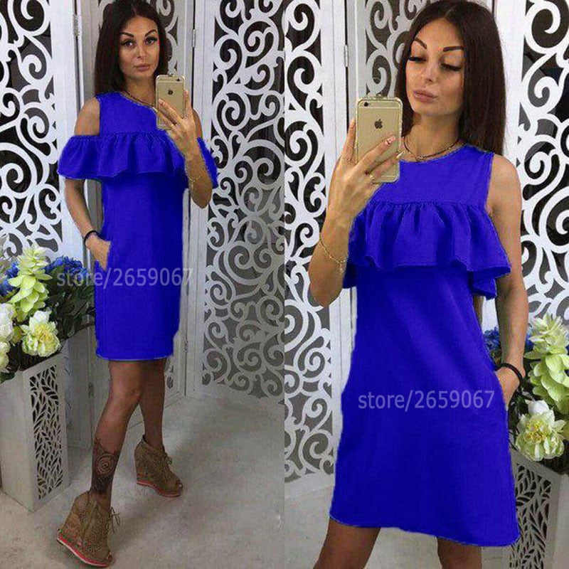 Solid 5 Colours Cold Shoulder Ruffles Embellishment Summer Dress O-Neck Butterfly Sleeve Casual Dress Party Mini Dresses