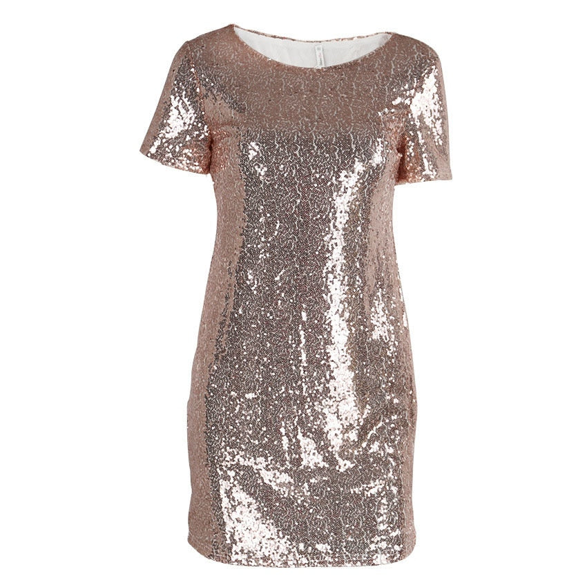 Gold Dress Summer Women Sexy Short T Shirt Dress Evening Party Elegant Club Dresses