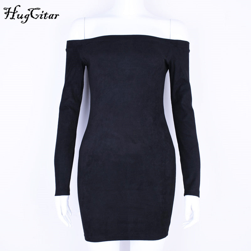 Long Sleeve off shoulder Women Suede Dress Autumn Winter Female sexy mini Bodycon party club Dresses pink black