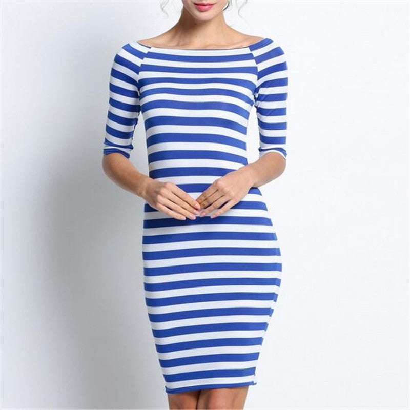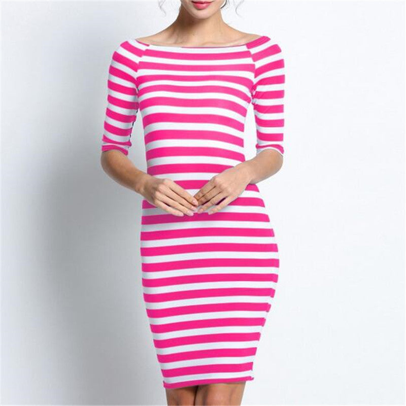 Women Summer Sheath Dresses Black and White Striped Dress Slash Neck Half Sleeve Plus Size Women Clothing Dresses