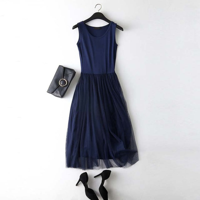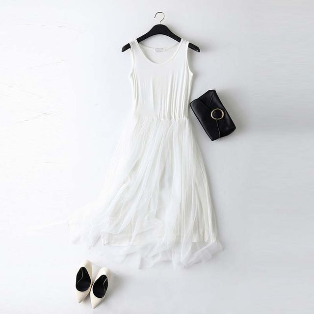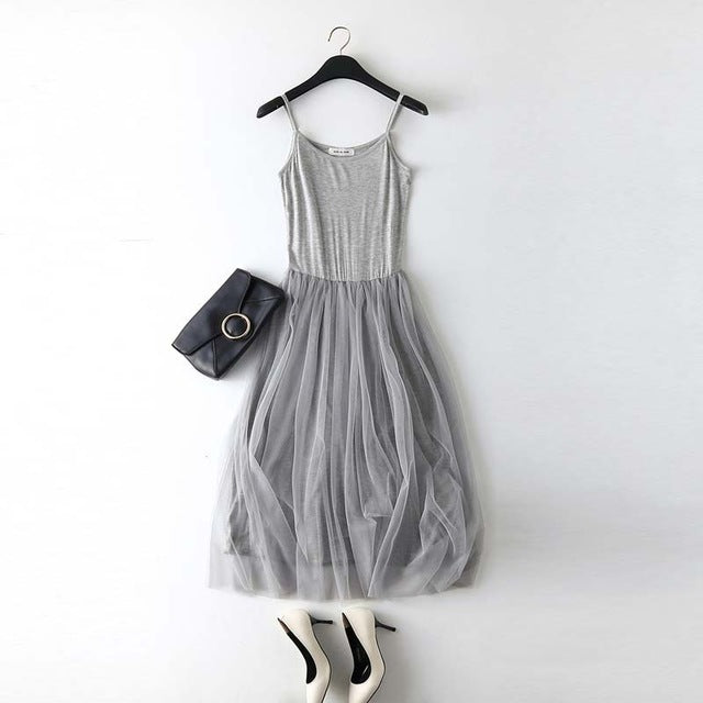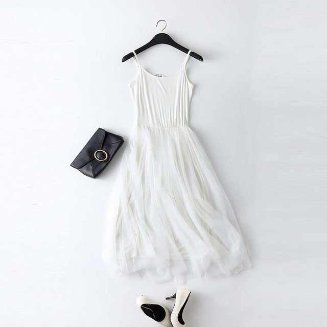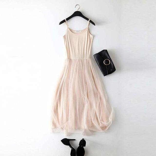 Sexy Spaghetti Strap Patchwork Mesh Dress Spring Summer Women Gauze Lace Tank Casual Dresses Sundress Party Vestidos