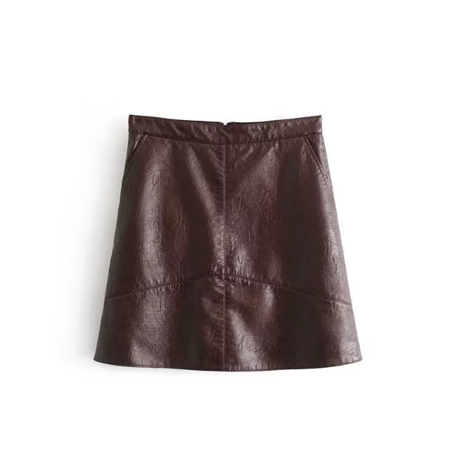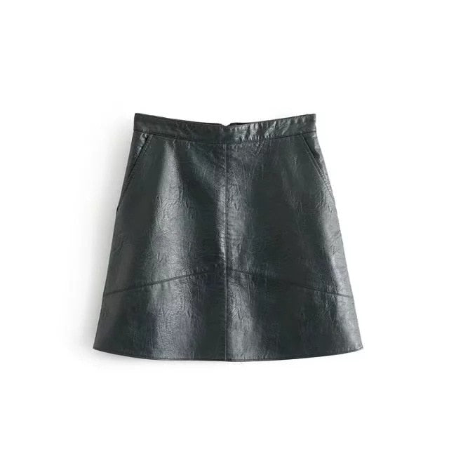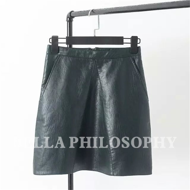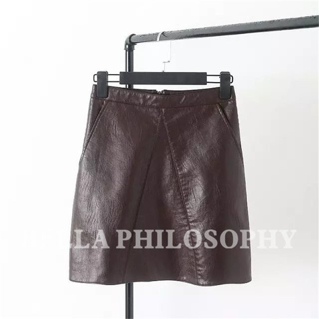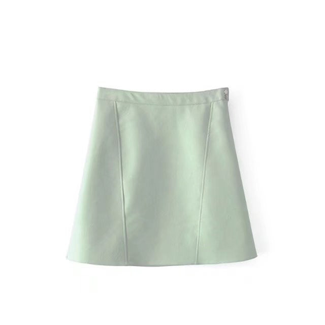 Spring high waist Skrit PU faux leather women skirt pink yellow black green blue zipper mini skirt women