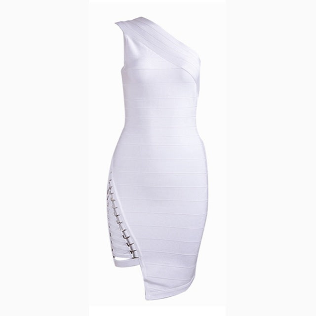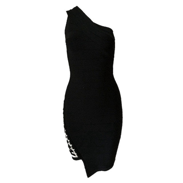 New Arrival Celebrity Party Dresses Women One Shoulder Sequined Sexy Spring Dress Sleeveless Bodycon Bandage Dress