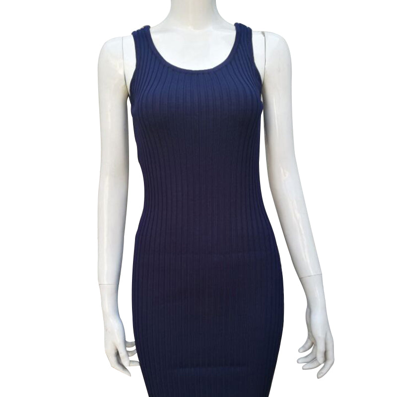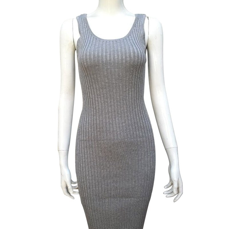 Sexy Sleeveless Knitted Tank Dress Women Knee Length Bodycon Dresses Summer 2018 Slim Scoop Neck Ribbed Robe Femme Sundress