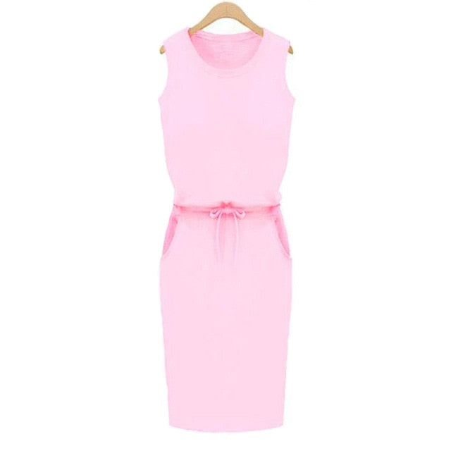 Summer Casual Dress Women Sleeveless Cotton Slim Pencil Dresses 2018 Sexy Work Office Dress Slim Fit Robe Mujer Pockets