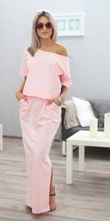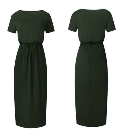 Sexy Summer Women Boho Maxi Dress Short Sleeve Side Slit Loose Evening Party Long Beach Dress with Pocket Vestidos