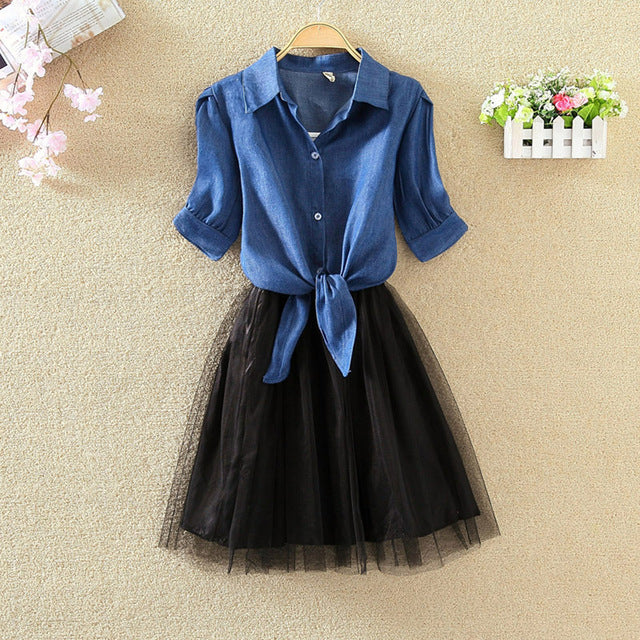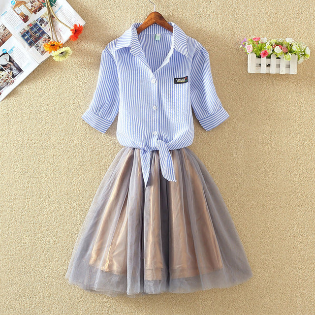 Shirt And Sling Tutu Dress Suit Women Summer Cute 2 Piece Dress Blue Pink Shirt And White Veil Dresses