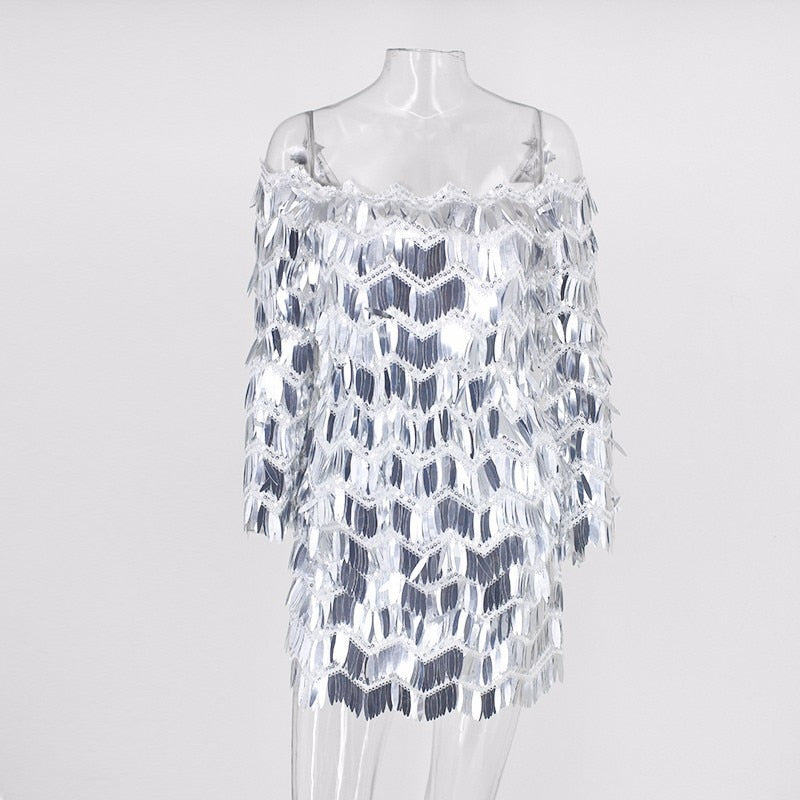 Elegant Club Party Short Strappless Dress Autumn Sexy Long Sleeve Bodycon Sequined Night Dresses Shining Vestidos