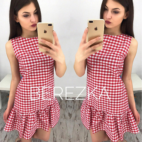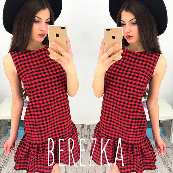 Women Plaid Ruffles Sexy Dress Ladies Sleeveless O-neck Vintage Tank Dress Summer Women A-Line Fashion Causal Mini Dress